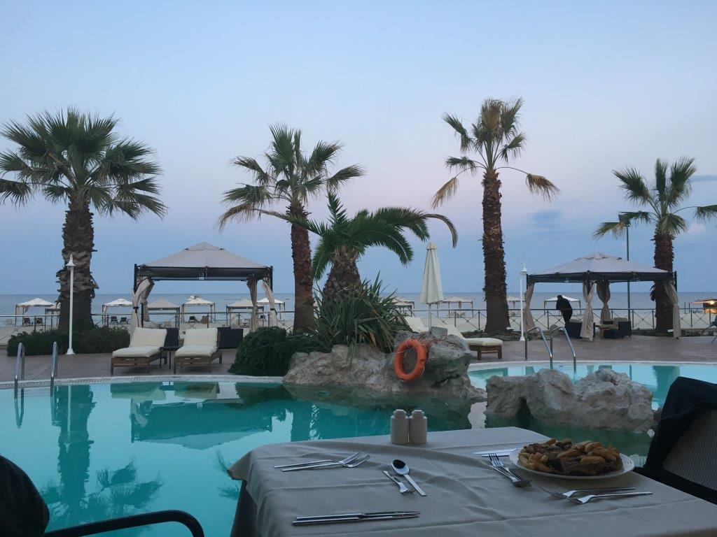 Abends war es möglich vom Hotel aus zu Fuß Paralia zu erkunden. Nach ca. 20 Minuten Fußmarsch erreicht man den Ort mit tollen Tavernen, Strandclubs, Shops und Bars. Hier haben wir uns es nicht nehmen lassen, einen Ouzo (oder auch zwei J ) zu trinken. Die griechische Gastfreundlichkeit ist wirklich sehr toll und wir fühlten uns unter den Einheimischen sehr willkommen.