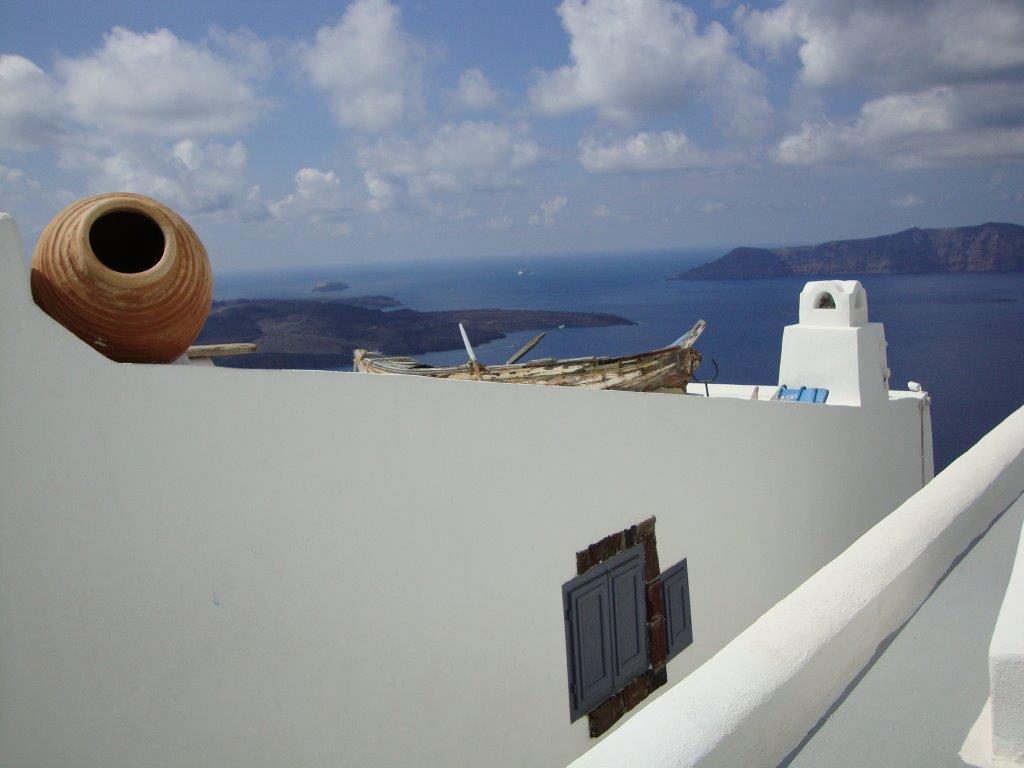 Station 3 Santorin: Die Insel mit dem Postkartenmotiv. Es ist tatsächlich so. In jeder Ecke möchte man den Fotoapparat zücken. Bei der Ankunft waren wir allerdings gleich mal richtig enttäuscht – es regnet!
