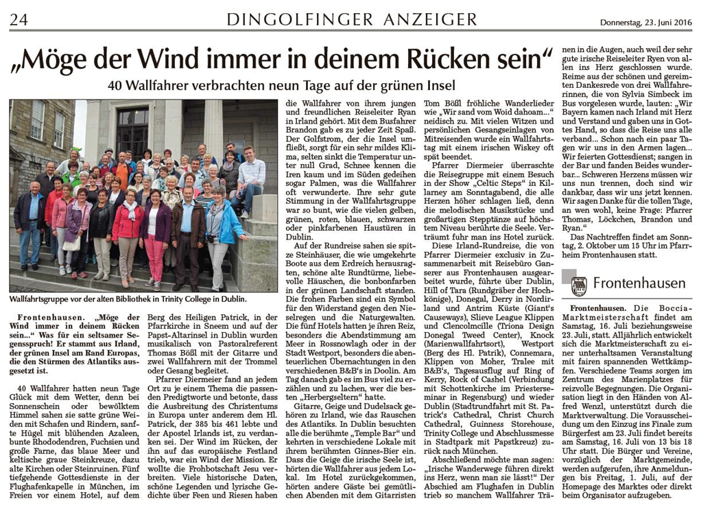 Pfarrwallfahrt Irland mit Pfr. Thomas Diermeier