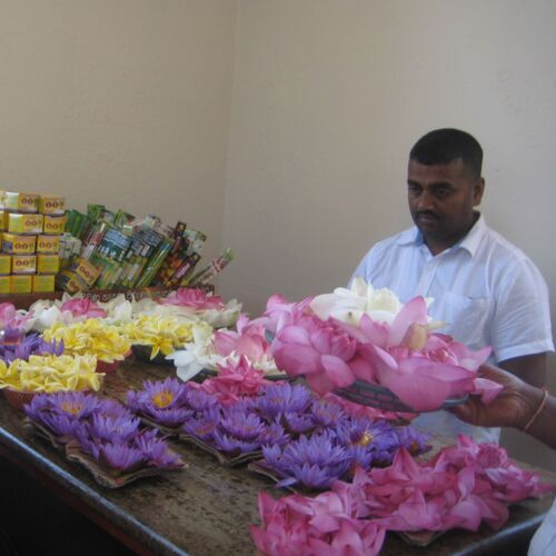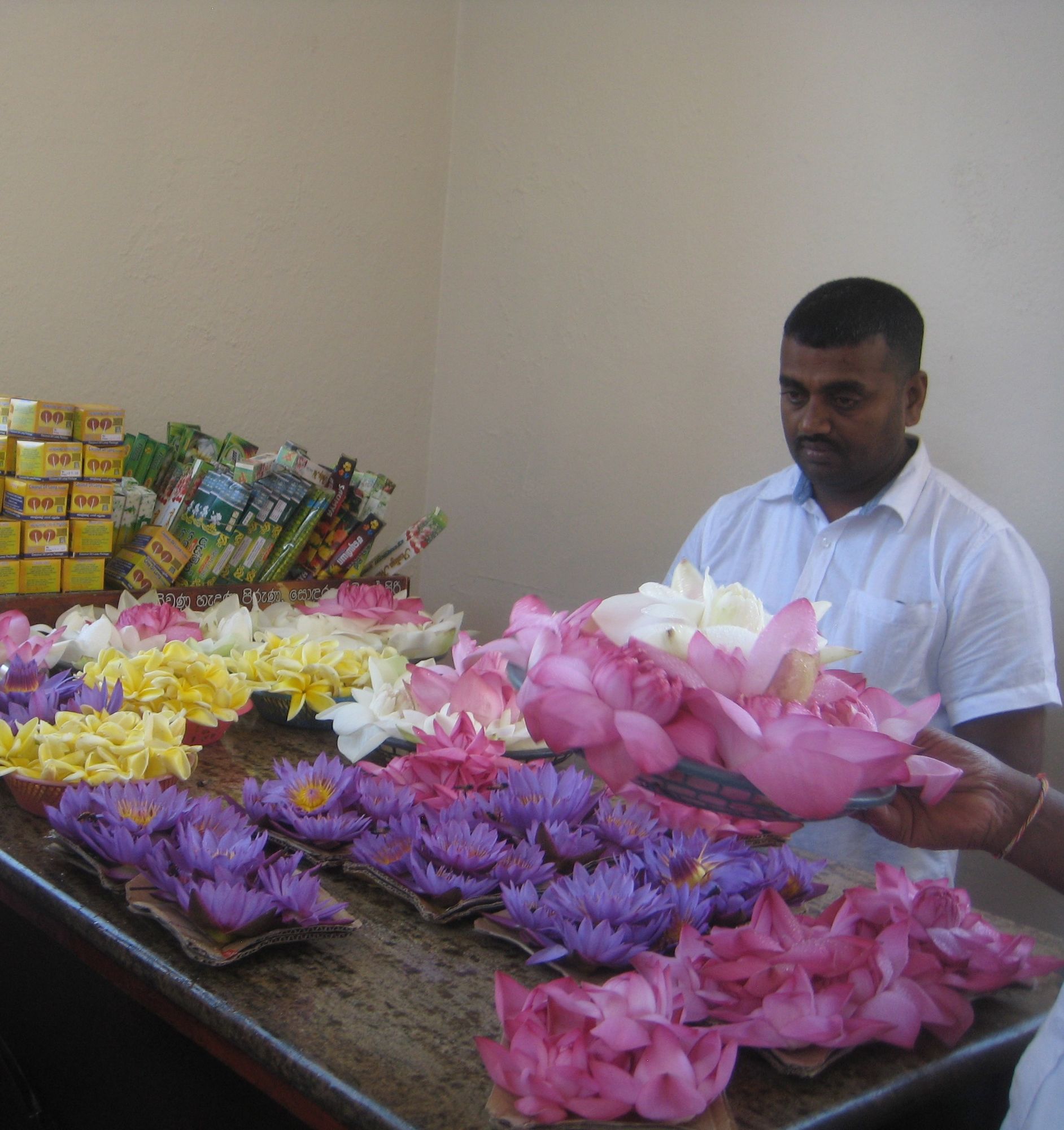 Der nächste Tag begann mit der Besichtigung des wichtigsten Tempels der Buddisten, dem Zahntempel in Kandy, in dem ein Zahn Buddas als Reliquie aufbewahrt wird. Er gilt als einer der reich verziertesten Sri Lankas. Tausende Pilger legen auf einem Gabentisch Blumen als Zeichen der Verehrung nieder.